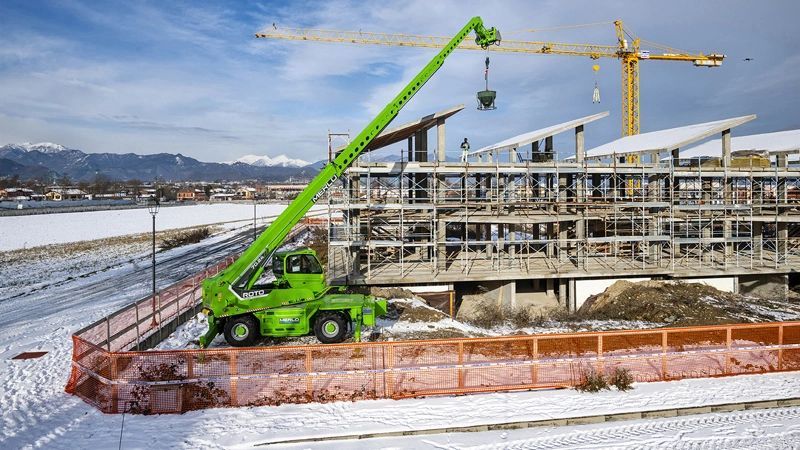 The Merlo Roto 70.24 is a high-performance rotating telehandler designed for demanding construction and infrastructure projects. With its 360° continuous rotation, advanced hydraulic systems, and robust build, it offers exceptional versatility and precision in material handling at significant heights and reaches. The machine's stability and operator-friendly features make it ideal for complex lifting tasks in challenging environments.